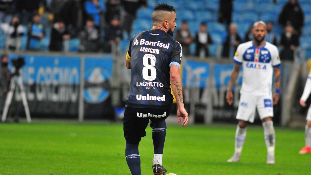 Capitão Maicon do Grêmio em lance da partida entre Grêmio 1 x 1 Cruzeiro válida pelo Campeonato Brasileiro 2018 na Arena do G