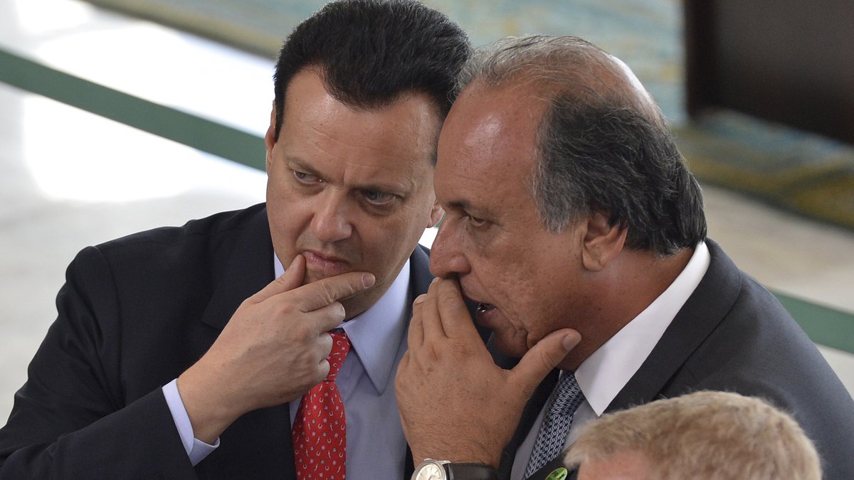 O ministro das Cidades, Gilberto Kassab, e o governador do Rio de Janeiro, Luiz Fernando Pezão, durante cerimônia de posse da presidenta Dilma Rousseff, no Palácio do Planalto (Wilson Dias/Agência Brasil) Foto: Agência Brasil/EBC — EBC/Agência Brasil — CC BY 3.0 BR