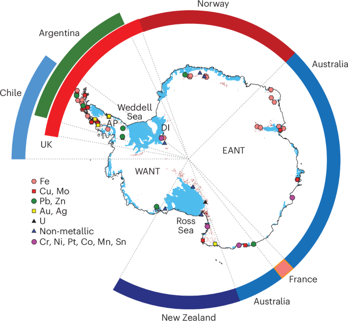 O surgimento de novas terras livres de gelo ocorrerá em todas as regiões com reivindicações territoriais existentes, bem como no setor não reivindicado da Antártica Ocidental. Este fenômeno pode expor novos depósitos minerais, aumentando a viabilidade econômica dos recursos minerais antárticos. No entanto, isso levanta preocupações sobre os impactos ambientais das atividades de extração de recursos minerais, que precisarão ser equilibrados com a pressão social por desenvolvimento sustentável.