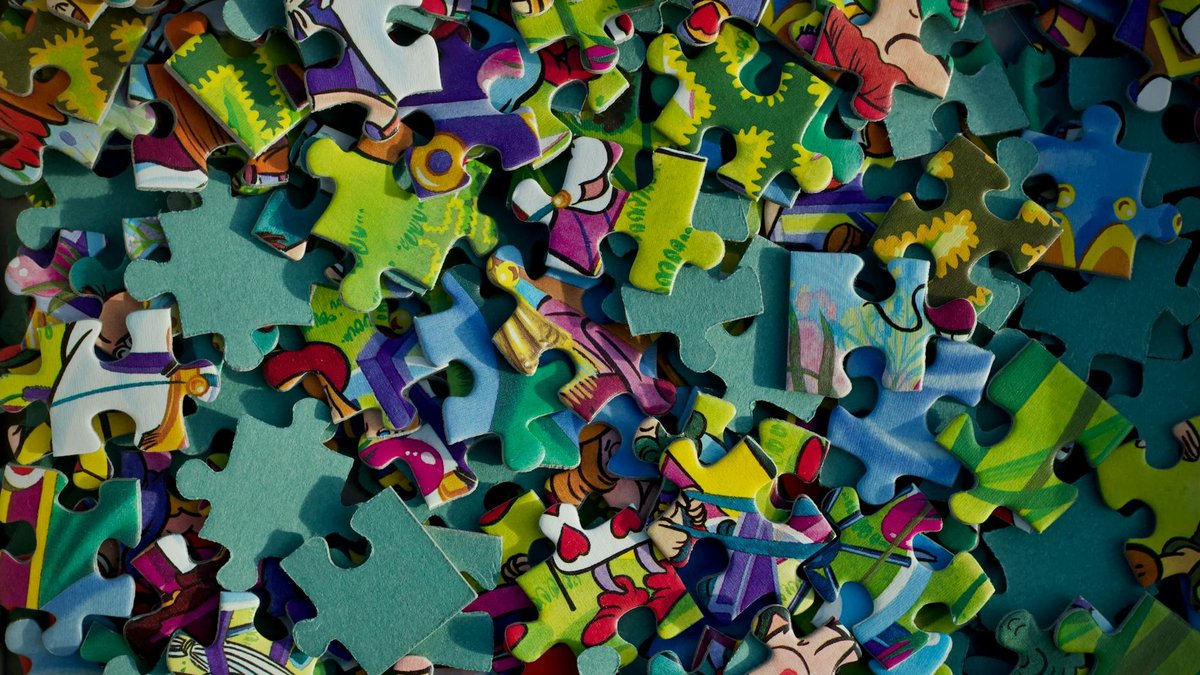 Vivid close-up of colorful jigsaw puzzle pieces scattered randomly. Foto: Peter Dyllong — Pexels License (livre para uso)