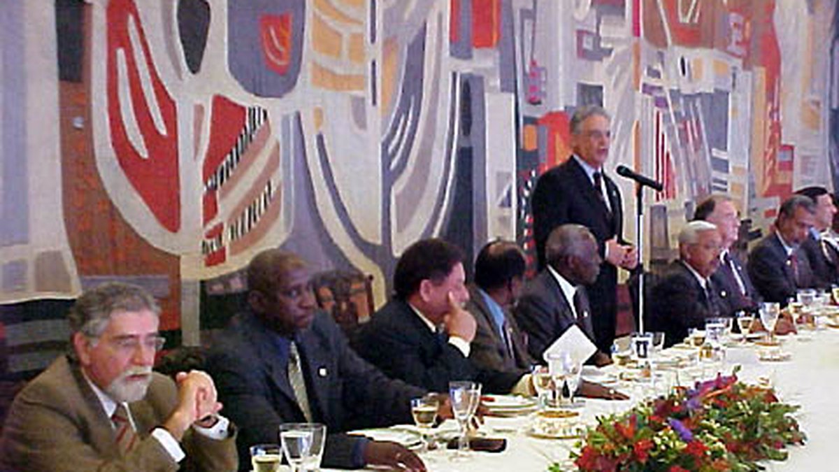 President Fernando Henrique Cardoso of Brazil speaks at a high-level meeting of the South Atlantic Peace and Cooperation Zone